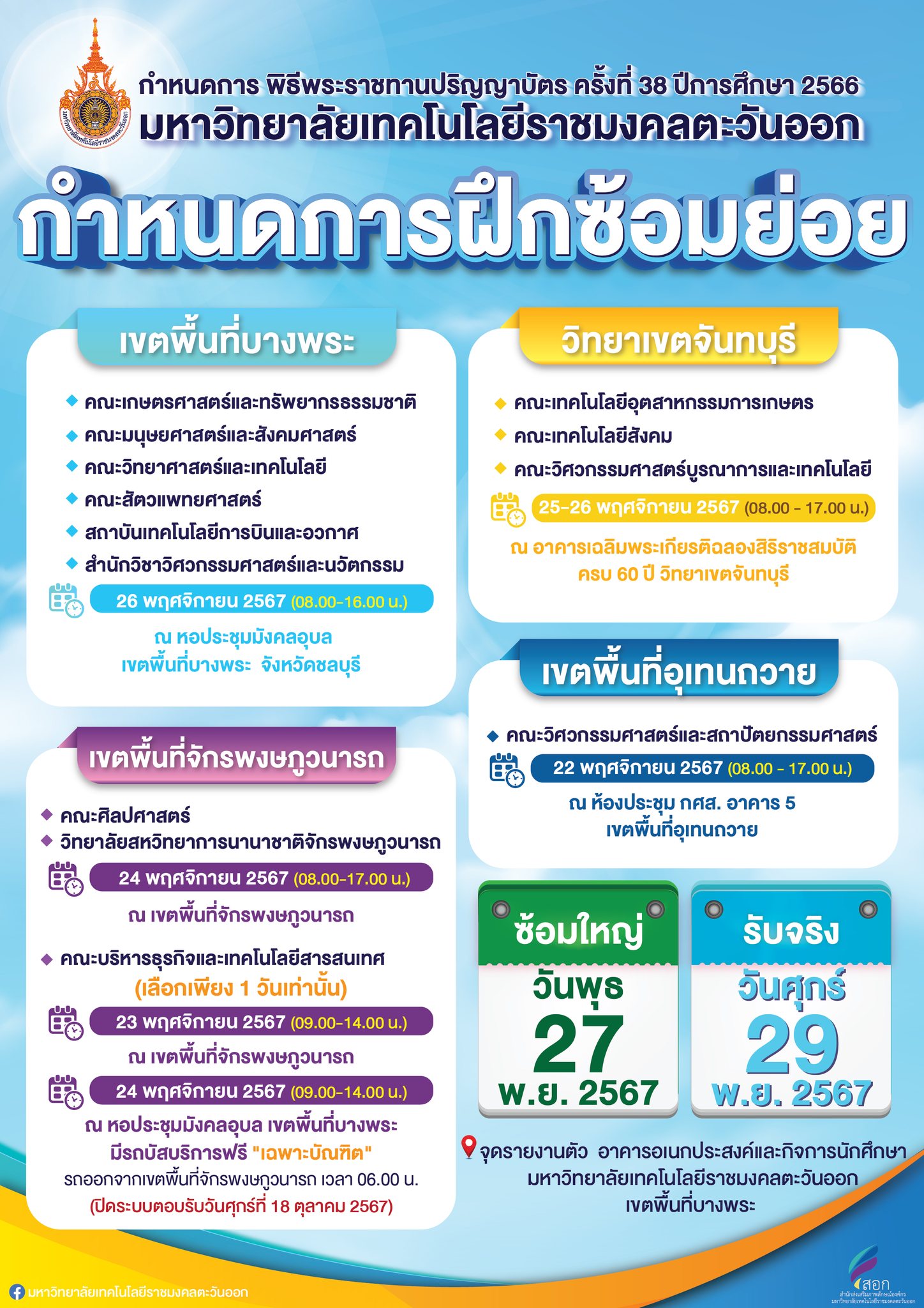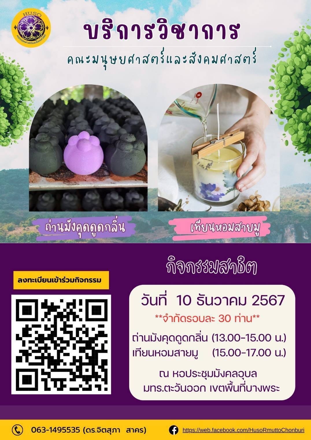 การบริการวิชาการของคณะมนุษยศาสตร์และสังคมศาสตร์ณ หอประชุมมังคลอุบล มหาวิทยาลัยเทคโนโลยีราชมงคลตะวันออก ตั้งแต่เวลา 13:00 นเป็นต้นไป