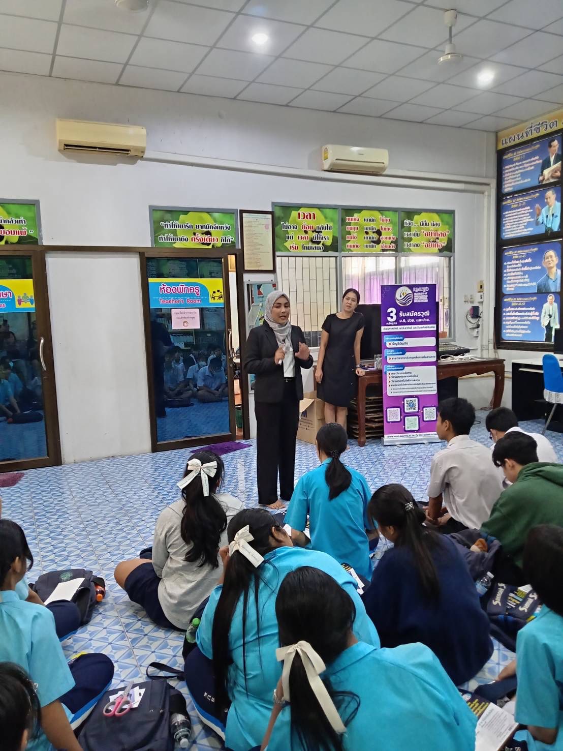 วันที่ 2 และ 4 กุมภาพันธ์ 2569 ผศ.วันทนา รอดประเสริฐ ผู้ช่วยคณบดีด้านงานประชาสัมพันธ์ พร้อมด้วยทีมงานประชาสัมพันธ์คณะมนุษยศาสตร์และสังคมศาสตร์ เข้าประชาสัมพันธ์หลักสูตร ณ โรงเรียนแสนสุข รูปแบบรายคาบ โดยเป็นครั้งที่ 2 ซึ่งกลุ่มเป้าหมายเป็นนักเรียนระดับมัธยมศึกษาชั้นปีที่ 6 เพื่อให้นักเรียนได้เข้าถึงหลักสูตร และข้อสงสัยในการสมัครเข้าศึกษาต่อ และเป็นทางเลือกให้นักเรียนต่อไป 624929137_1476292691169175_842173879903236010_n 623432054_1477360811062363_6647454654495112485_n (1) 627381872_1476292544502523_3451939603627230390_n 627186940_1476292537835857_7017341585095544716_n 627128212_1476292777835833_2910533312824206440_n 626439078_1476292721169172_6831239519860297625_n 625687505_1477360864395691_5657592174111305674_n 625626866_1477360854395692_2086477880702394601_n 625557673_1477360941062350_5725539717762608411_n 625196978_1477360814395696_8245694070289885449_n 625077178_1476292934502484_32737723999136500_n 624456675_1476292527835858_3653803799084699943_n 623432054_1477360811062363_6647454654495112485_n