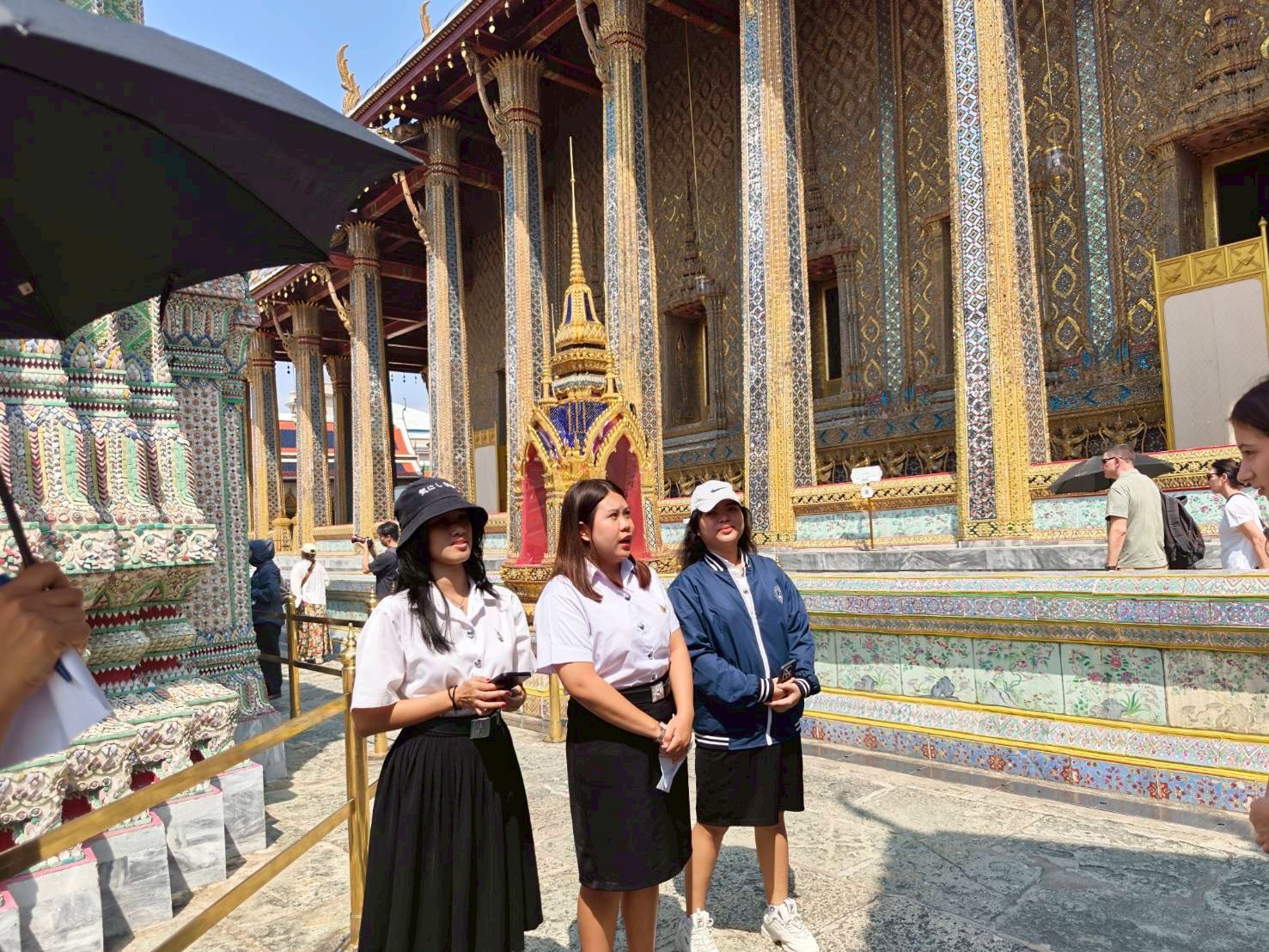 เมื่อวันที่ 9 มีนาคม พ.ศ. 2569 ผู้ช่วยศาสตราจารย์พรชัย พรวิริยะกิจและผู้ช่วยศาสตราจารย์วรินทร แดนดี สาขาวิชาภาษาอังกฤษเพื่อการสื่อสารสากล คณะมนุษยศาสตร์และสังคมศาสตร์ นำนักศึกษาในรายวิชาภาษาอังกฤษสำหรับมัคคุเทศก์ ออกฝึกปฏิบัติภาคสนามเรื่องการบรรยายทัวร์แก่นักท่องเที่ยว ณ วัดพระศรีรัตนศาสดาราม กรุงเทพมหานคร เพื่อฝึกฝนทักษะการสื่อสารและเพิ่มพูนความรู้ด้านภาษาอังกฤษและการท่องเที่ยว ณ สถานที่จริง S__34365491_0 S__34365501_0 S__34373693_0 S__34373694_0 S__34373695_0 S__34373696_0 S__34373697_0 S__34365502_0
